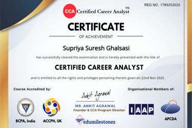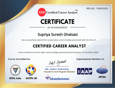 I, Supriya Ghalsasi, am on a mission to transform uncertainty into clarity and potential into progress, helping aspirants take off to success.