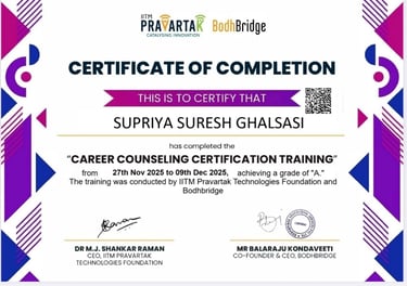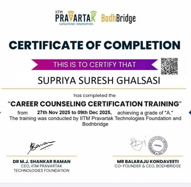 Completed Career Couseling Certification Training by IITM Pravartak and Bodhbridge with Grade A
